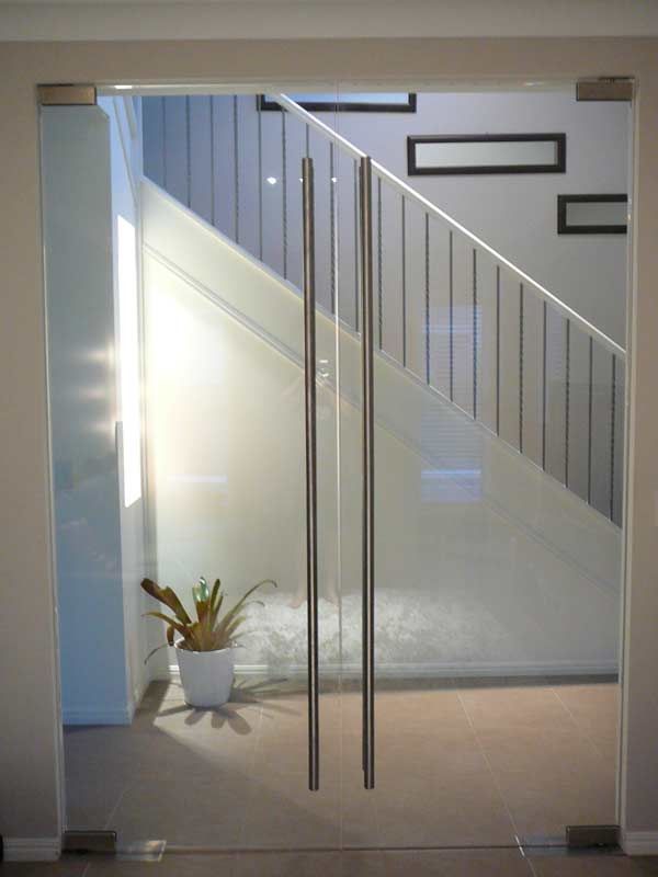 Противопожарная безрамная дверь со стеклом в частный дом в Красногорске